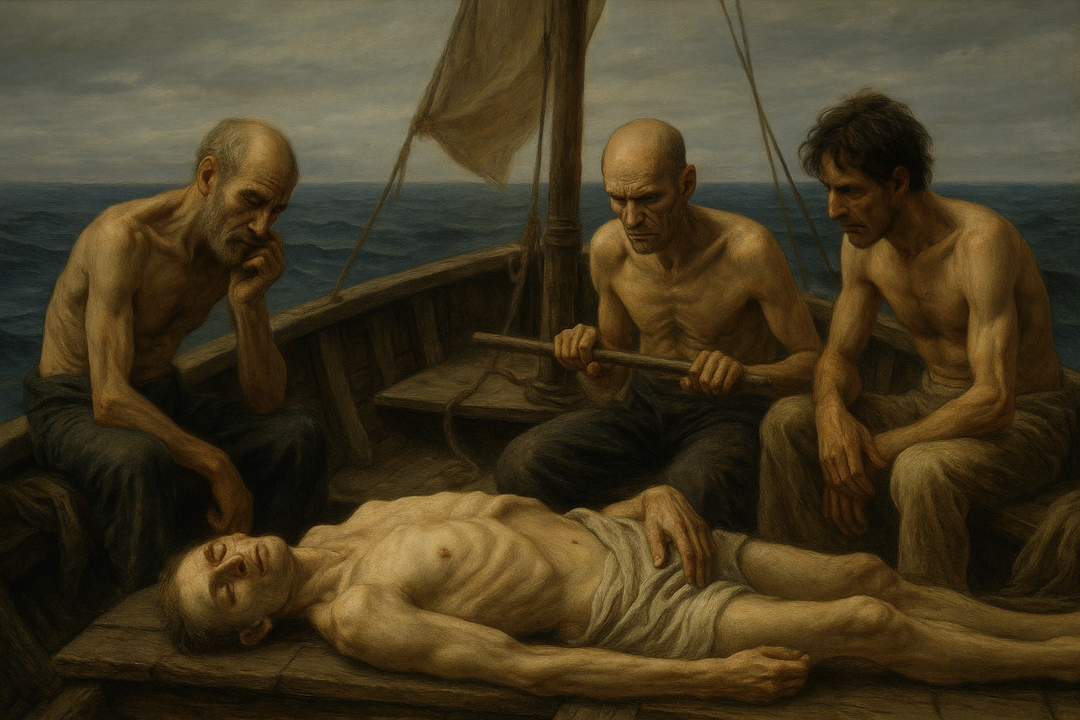 1884년, 조난당한 영국 선원 4명이 구조를 기다리며 바다 위에서 며칠을 버티던 중, 결국 가장 약한 소년을 죽여 그의 몸을 먹는 극단적 선택을 한다. 이 사건은 실제로 법정에 서게 되었고, “생존을 위한 살인은 정당화될 수 있는가?”라는 도덕적 질문을 던진다. 이 이야기는 단지 생존극이 아니다. 인간 사회에서 정의가 어디에 뿌리를 두는지에 대한 질문이자, 우리가 윤리적 딜레마를 어떻게 판단해야 하는지를 보여주는 실험과도 같다.